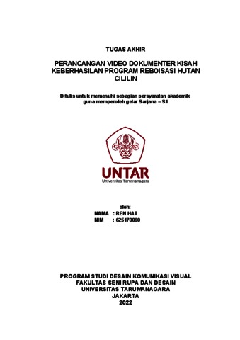 Hat, Ren (2022) Perancangan video dokumenter kisah keberhasilan program reboisasi hutan Cililin (DKV - 2898). Skripsi thesis, Universitas Tarumanagara.