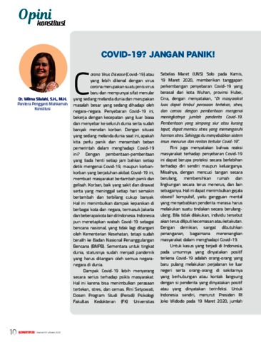 Silalahi, Wilma (2020) Covid-19? Jangan Panik! Majalah Konstitusi.