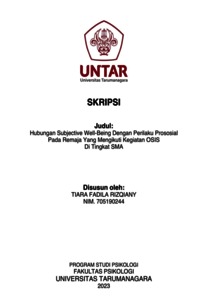 Rizqiany, Tiara Fadila (2023) Hubungan Subjective Well-Being Dengan Perilaku Prososial Terhadap Remaja Yang Mengikuti Kegiatan OSIS Di Tingkat SMA. Skripsi thesis, Universitas Tarumanagara.