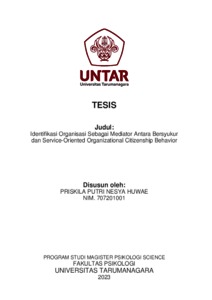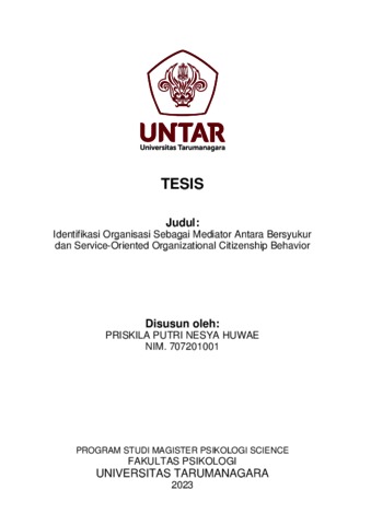Huwae, Priskila Putri Nesya (2023) Identifikasi Organisasi Sebagai Mediator Antara Bersyukur dan Service-Oriented Organizational Citizenship Behavior. Masters thesis, Universitas Tarumanagara.