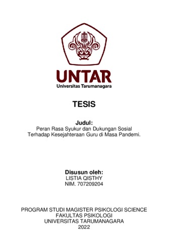 Qisthy, Listia (2023) Peran Rasa Syukur dan Dukungan Sosial terhadap Kesejahteraan Guru di Masa Pandemi. Masters thesis, Universitas Tarumanagara.
