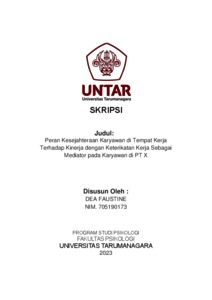 Faustine, Dea (2023) Peran Kesejahteraan Karyawan di Tempat Kerja Terhadap Kinerja dengan Keterikatan Kerja sebagai Mediator Pada Karyawan di PT X. Skripsi thesis, Universitas Tarumanagara.