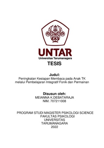 Debataraja, Meianna K. (2023) Peningkatan Kesiapan Membaca pada Anak TK melalui Pembelajaran Integratif Fonik dan Permainan. Masters thesis, Universitas Tarumanagara.