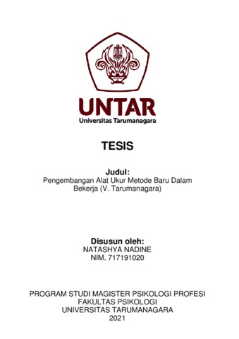Nadine, Natashya (2023) Pengembangan Alat Ukur Metode Baru Dalam Bekerja (V. Tarumanagara). Masters thesis, Universitas Tarumanagara.