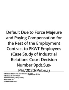 Taufik, Julius and Gunardi, Lie (2021) Turnitin : Default Due to Force Majeure and Paying Compensation for the Rest of the Employment Contract to PKWT Employees (Case Study of Industrial Relations Court Decision Number 9pdt.Sus-Phi/2020/Pnbna). TICASH 2021.