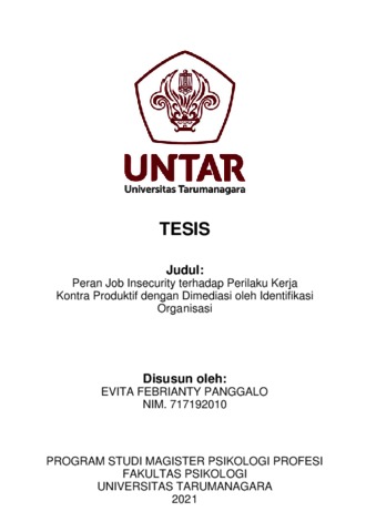 Panggalo, Evita Febrianty (2023) Uji Peran Identifikasi Organisasi sebagai Mediator antara Ketidak Amanan terhadap Status/Kondisi Pekerjaan dan Perilaku Kerja Kontra Produktif. Masters thesis, Universitas Tarumanagara.