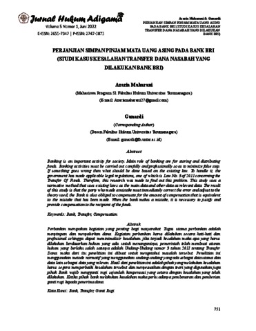 Maharani, Azaria and Gunardi, Gunardi (2022) PERJANJIAN SIMPAN PINJAM MATA UANG ASING PADA BANK BRI (STUDI KASUS KESALAHAN TRANSFER DANA NASABAH YANG DILAKUKAN BANK BRI). Jurnal Hukum Adigama, 5 (1). ISSN E: 2655-7347, P: 2747-0873