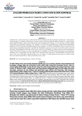 Sudiro, Amad and Gunardi, Lie and Aprilia, Indah Siti and Putri, Salsabila and Femilia, Naomi (2022) Analisis Pembagian Harta Gono Gini Kawin Kontrak. Seri Seminar Nasional Universitas Tarumanagara Tahun 2022 (SERINA IV UNTAR 2022).