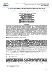 Prosiding Nasional - ANALISIS PEMBAGIAN HARTA GONO GINI KAWIN KONTRA.pdf Download (323kB) | Preview |
