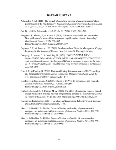 DJAYA, TAWI (2022) PENGARUH PERTUMBUHAN PENJUALAN, PERPUTARAN PIUTANG, PERPUTARAN PERSEDIAAN, TERHADAP PROFITABILITAS PERUSAHAAN FARMASI YANG TERDAFTAR DI BURSA EFEK INDONESIA. Masters thesis, Universitas Tarumanagara.
