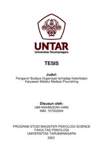 Hani, Umi Mahmudah (2023) Pengaruh Budaya Organisasi terhadap Keterikatan Karyawan Melalui Mediasi Flourishing. Masters thesis, Universitas Tarumanagara.