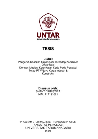 Yudistira, Shanti (2023) Pengaruh Keadilan Organisasi terhadap Komitmen Organisasi dengan Mediasi Keterikatan Kerja pada Pegawai Tetap PT X. Masters thesis, Universitas Tarumanagara.