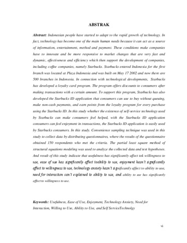 Indonesian people have started to adapt to the rapid growth of technology. In fact, technology has become one of the main human needs because it can act as a source of information, entertainment, method and payment. These conditions make companies have to innovate and be more responsive to market changes that are very fast and dynamic, effectiveness and efficiency which then support the development of companies, including coffee companies, namely Starbucks. Starbucks entered Indonesia for the first branch was located at Plaza Indonesia and was built on May 17 2002 and now there are 500 branches in Indonesia. In connection with technological developments, Starbucks has developed a loyalty card program. The program offers discounts to consumers after making transactions with a certain amount. To support this program, Starbucks has also developed the Starbucks ID application that consumers can use to buy without queuing, make non-cash payments, and earn points from the loyalty program for every purchase using the Starbucks ID. In this study whether the existence of self-service technology used by Starbucks can make consumers feel helped, with the Starbucks ID application consumers can feel enjoyment in transactions, the Starbucks ID application is easily used by Starbucks consumers. In this study. Convenience sampling technique was used in this study to collect data by distributing questionnaires, where the results of the questionnaire obtained 150 respondents who met the criteria. The partial least square method of