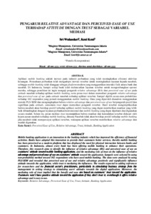 customers. In Indonesia, almost every bank has been offering mobile banking to enhance their operations. Therefore, this research aims to identify the influence of relative advantage (RA) and perceived ease of use on customers’ attitude toward mobile banking application, and the mediating role of trust on the influence of relative