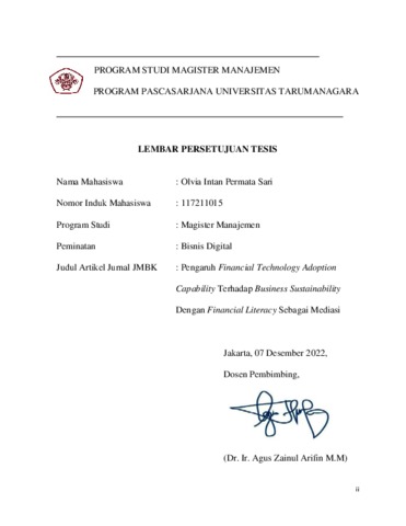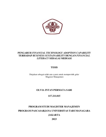 SARI, OLVIA INTAN PERMATA (2022) PENGARUH FINANCIAL TECHNOLOGY ADOPTION CAPABILITY TERHADAP BUSINESS SUSTAINABILITY DENGAN FINANCIAL LITERACY SEBAGAI MEDIASI. Masters thesis, Universitas Tarumanagara.