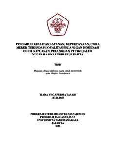 PERMATASARI, TIARA VEGA (2022) PENGARUH KUALITAS LAYANAN, KEPERCAYAAN, CITRA MEREK TERHADAP LOYALITAS PELANGGAN DIMEDIASI OLEH KEPUASAN PELANGGAN PT TIKI JALUR NUGRAHA EKAKURIR DI JAKARTA. Masters thesis, Universitas Tarumanagara.