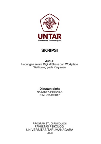 Priskila, Natasya (2023) Hubungan antara Digital Stress dan Workplace Well-being pada Karyawan. Skripsi thesis, Universitas Tarumanagara.