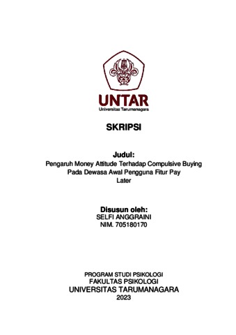 Anggraini, Selfi (2023) Pengaruh Money Attitude Terhadap Compulsive Buying pada Dewasa Awal Pengguna Fitur Pay Later. Skripsi thesis, Universitas Tarumanagara.
