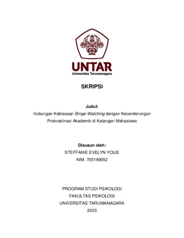 Yolie, Steffanie Evelyn (2023) Hubungan Kebiasaan Binge-Watching dengan Prokrastinasi Akademik di Kalangan Mahasiswa. Skripsi thesis, Universitas Tarumanagara.