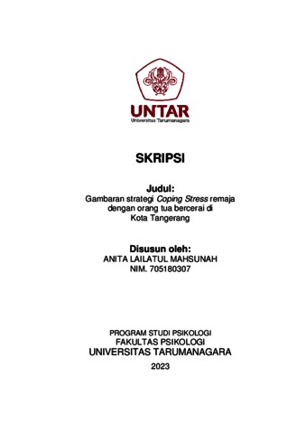 Mahsunah, Anita Lailatul (2023) Gambaran strategi coping stress remaja dengan orang tua bercerai di Kota Tangerang. Skripsi thesis, Universitas Tarumanagara.