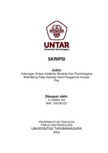 Ho, Floren (2023) Hubungan antara Celebrity Worship dan Psychological Well-Being pada Dewasa Awal Penggemar Korean Pop. Skripsi thesis, Universitas Tarumanagara.