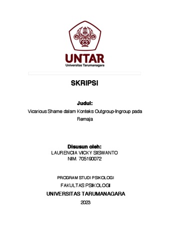 Siswanto, Laurencia Vicky (2023) Vicarious Shame dalam Konteks Outgroup-Ingroup Remaja. Skripsi thesis, Universitas Tarumanagara.