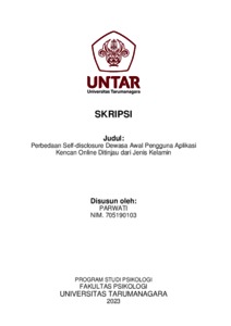 Parwati, Parwati (2023) Perbedaan Self-Disclosure Dewasa Awal Pengguna Aplikasi Kencan Online Ditinjau dari Jenis Kelamin. Skripsi thesis, Universitas Tarumanagara.