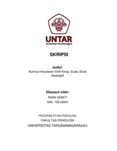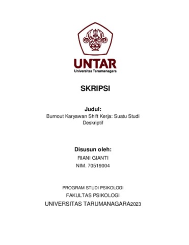 Gianti, Riani (2023) Burnout Pada Karyawan Yang Mengalami Pergantian Shift Kerja: Sebuah Studi Deskriptif. Skripsi thesis, Universitas Tarumanagara.