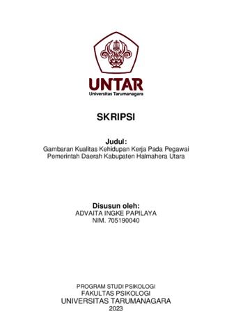 Papilaya, Advaita Ingke (2023) Gambaran Kualitas Kehidupan Kerja Pada Pegawai Pemerintah Daerah Kabupaten Halmahera Utara (Studi pada Generasi X dan Y). Skripsi thesis, Universitas Tarumanagara.