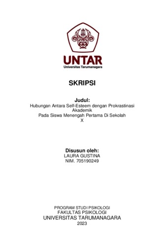 Hutapea, Laura Gustina Uli (2023) Hubungan Sef-Esteem Terhadap Prokrastinasi Akademik Sisw a Menengah Pertama (SMP) Sekolah X. Skripsi thesis, Universitas Tarumanagara.
