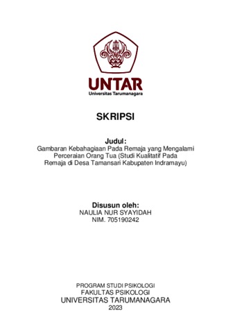 Syayidah, Naulia Nur (2023) Gambaran Kebahagiaan Pada Remaja yang Mengalami Perceraian Orang Tua (Studi Kualitatif Pada Remaja di Desa Tamansari Kabupaten Indramayu). Skripsi thesis, Universitas Tarumanagara.