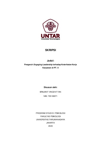 Tan, Briliant Vincent (2023) Pengaruh Engaging Leadership terhadap Keterikatan Kerja Karyawan di PT. X. Skripsi thesis, Universitas Tarumanagara.