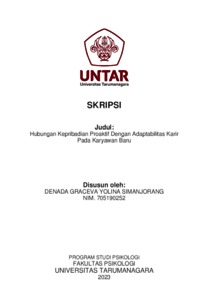 Simanjorang, Denada Graceva Yollna (2023) Hubungan Kepribadian Proaktif dengan Adaptabilitas Karir pada Karyawan Baru. Skripsi thesis, Universitas Tarumanagara.