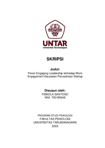 Santoso, Febiola (2023) Peran Engaging Leadership Terhadap Work Engagement Pada Karyawan Perusahaan Startup. Skripsi thesis, Universitas Tarumanagara.