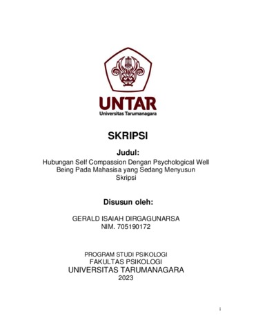 Dirgagunarsa, Gerald Isaiah (2023) Hubungan Self Compassion Dengan Psychological Well Being Pada Mahasiswa Yang Sedang Menyusun Skripsi. Skripsi thesis, Universitas Tarumanagara.