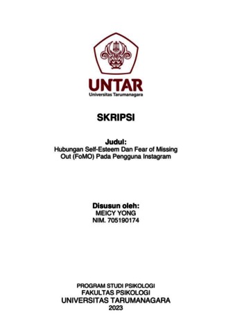 Yong, Meicy (2023) Hubungan Self-esteem dan Fear of missing out (FoMO) pada Pengguna Instagram. Skripsi thesis, Universitas Tarumanagara.