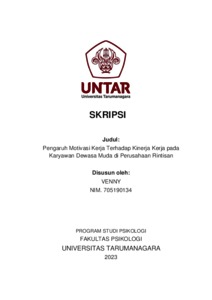 Venny, Venny (2023) Pengaruh Motivasi Kerja terhadap Kinerja Kerja pada Karyawan Dewasa Muda di Perusahaan Rintisan. Skripsi thesis, Universitas Tarumanagara.