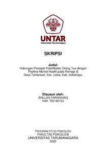 Faranihaq, Zhillan (2023) Hubungan Persepsi Keterlibatan Orang Tua dengan Positive Mental Health pada Remaja di Desa Tamansari, Kec. Lelea, Kab. Indramayu. Skripsi thesis, Universitas Tarumanagara.