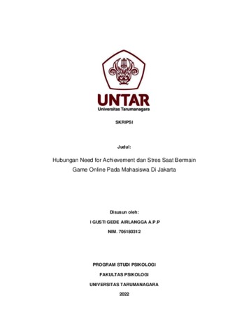 Airlangga, I Gusti Gede (2023) Hubungan Need for Achievement dan Stres Saat Bermain Game online Pada Mahasiswa Di Jakarta. Skripsi thesis, Universitas Tarumanagara.