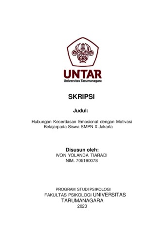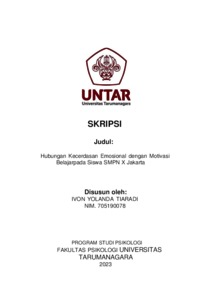 Tiaradi, Ivon Yolanda (2023) Hubungan Kecerdasan Emosional dengan Motivasi Belajar Pada Siswa SMPN X Jakarta. Skripsi thesis, Universitas Tarumanagara.