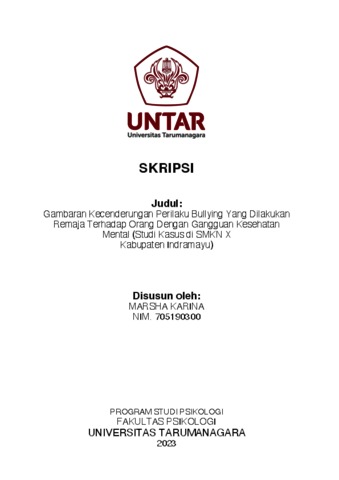 Karina, Marsha (2023) Gambaran Kecenderungan Perilaku Bullying Yang Dilakukan Remaja Terhadap Orang Dengan Gangguan Kesehatan Mental (Studi Kasus Di SMKN X Kabupaten Indramayu). Skripsi thesis, Universitas Tarumanagara.