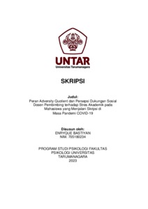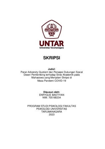 Bastiyan, Enryque (2023) Peranan Adversity Quotient dan Persepsi Dukungan dari Dosen Pembimbing pada Mahasiswa yang mengerjakan skripsi di Masa Pandemi COVID-19. Skripsi thesis, Universitas Tarumanagara.