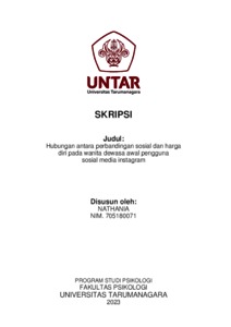 Nathania, Nathania (2023) Hubungan antara Perbandingan Sosial dan Harga Diri pada Wanita Dewasa Awal Pengguna Sosial Media Instagram. Skripsi thesis, Universitas Tarumanagara.