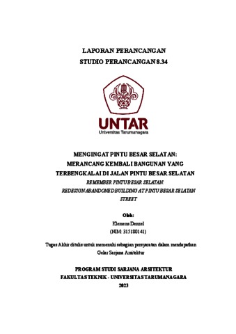 Klemens, Denzel (2023) Mengingat pintu besar selatan: merancang kembali bangunan yang terbengkalai di jalan pintu besar selatan (ARS - 5298). Skripsi thesis, Universitas Tarumanagara.