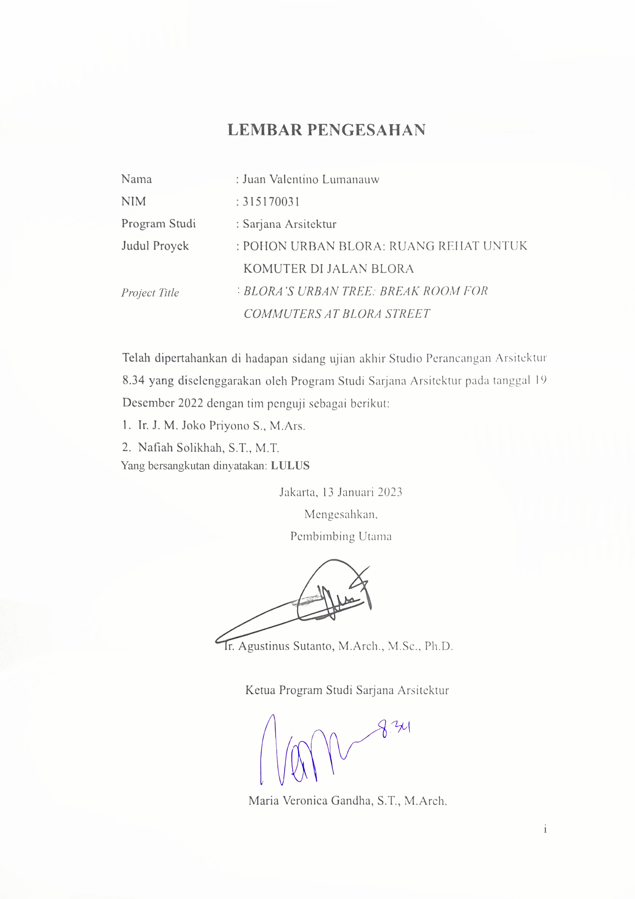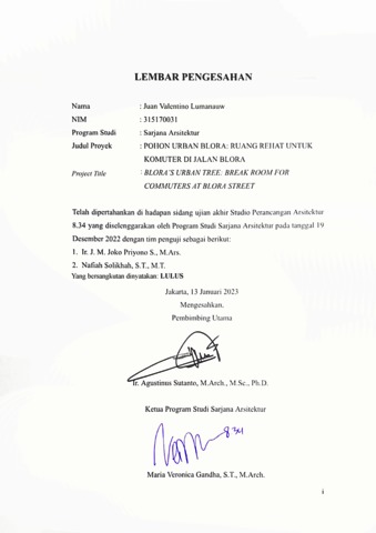 Lumanauw, Juan Valentino (2023) Pohon urban Blora: ruang rehat untuk komuter di jalan Blora (ARS - 5313). Skripsi thesis, Universitas Tarumanagara.