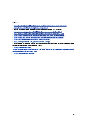Sudah lama menjadi permasalahan yang sulit untuk ditangani, krisis akan air bersih sudah mencapai tahap yang sangat memprihatinkan. Kawasan Jakarta Utara merupakan salah satu Kawasan dengan tingkat kekurangan air bersih yang sangat tinggi. Terutama Kawasan Muara Angke, didominasi oleh pasar ikan dan pelabuhan sehingga menyebabkan Kawasan Muara Angke sangat kesulitan air bersih. Pemerintah sudah mengupayakan untuk membuat saluran air bersih untuk menjadi sumber air yang dapat menolong Kawasan tersebut, namun ternyata tidak semudah yang dipikirkan. Masyarakat dipaksa untuk membeli air dengan harga yang malah hanya untuk bertahan hidup, atau menampung air hujan yang akan dipakai untuk memasak, minum, dan mandi. Tentu hal ini tidak baik karena kebersihan air hujan yang ditampung sangat tidak terjamin. Maka diperlukan sebuah interfensi baru yang dapat membantu menyelesaikan atau memperbaiki permasalahan ini. Penyulingan air mungkin menjadi hal yang dapat dilakukan untuk menyelesaikan masalah tersebut. Kata kunci: Krisis, Air Bersih, Muara Angke, Penyulingan