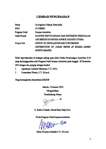 Fissichella, Jo Angelica Cahaya (2023) Kantor penyulingan dan distribusi penjualan air bersih di muara angke Jakarta Utara (ARS - 5323). Skripsi thesis, Universitas Tarumanagara.