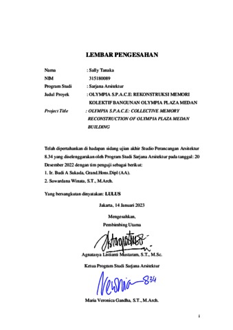 Tanaka, Sally (2023) Olympia s.p.a.c.e: rekonstruksi memori kolektif bangunan olympia plaza Medan (ARS - 5324). Skripsi thesis, Universitas Tarumanagara.