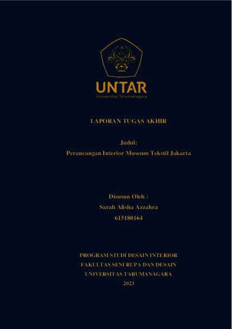 Azzahra, Sarah Alisha (2023) Perancangan interior museum tekstil Jakarta (DI - 2358). Skripsi thesis, Universitas Tarumanagara.