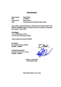 Esther, Dianyi (2023) Perancangan interior manhattan hotel, Jakarta (DI - 2362). Skripsi thesis, Universitas Tarumanagara.